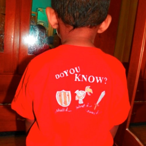 For this season I have been doing some sewing. After sewing eight of my son’s T-shirts I wanted to do some painting on them. It is such a blessing to know there is a place of inspiration that I could go to. Leafing through the Cub Corner Magazines and checking out the web sites I got the satisfaction of my soul. May God richly bless those involved in the illustration departments with more glorious ideas. Below are pictures of the T-shirts.